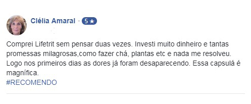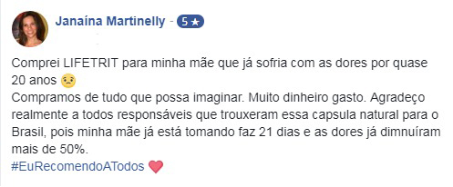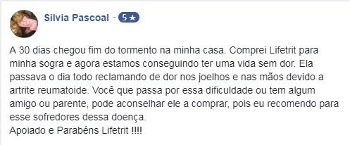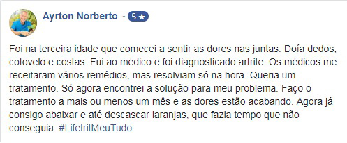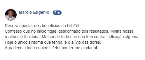 “LifeTrit é o produto natural para artrite e artrose mais completo do mercado, prova disso, é seu sucesso mundial. Quando o assunto é o combate aos sintomas dessas doenças, ele é referência. LifeTrit devolve a qualquer pessoa, em qualquer idade, e que sofre com dores, falta de movimentação e inchaços, uma vida mais equilibrada e com mais segurança.”